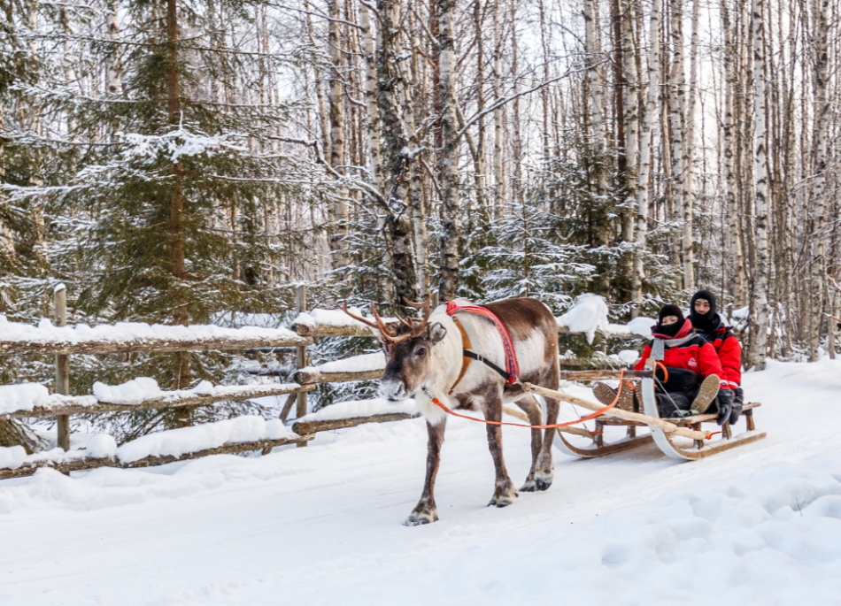 Durante questa memorabile escursione, raggiungerete in auto un allevamento di renne, dove potrete provare l’ebbrezza di una gita sulla slitta trainata dalle renne. Questo tradizionale modo di viaggiare attraverso le foreste innevate è un’esperienza davvero unica. Gusterete una bevanda calda accompagnata da uno spuntino intorno al fuoco all’aperto e potrete scoprire di più sull’affascinante vita che conducono gli allevatori di renne.