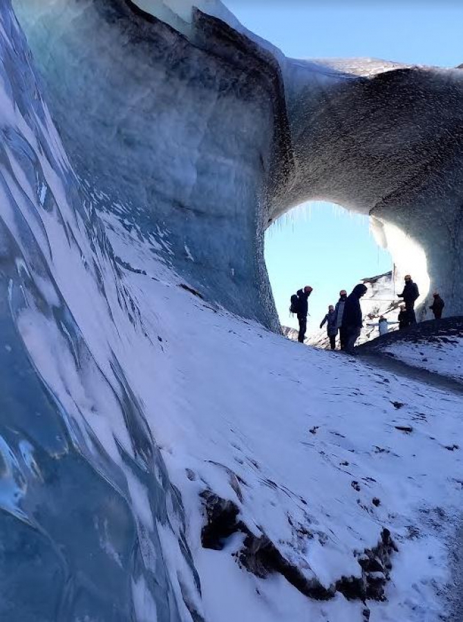 Preparati per paesaggi da film e panorami mozzafiato come non hai mai fatto prima. Cammineremo attraverso il ghiacciaio Myrdalsjokull, quindi visiteremo l'incredibile grotta del ghiacciaio Kötlujökull sul monte Katla. Madre Natura si è davvero superata con questo! INCLUSO: super jeep, ramponi per camminare sul ghiaccio, dispositivi di sicurezza richiesti, guida con licenza in lingua inglese. COSA PORTARE: Scarpe da trekking robuste , vestiti caldi, giacca e pantaloni impermeabili, copricapo e guanti. ITINERARIO: Il ghiacciaio Mýrdalsjökull è uno dei più conosciuti in Islanda, da cui ha origine l'affascinante ghiacciaio Kötlujökull, che prende il nome dal robusto vulcano islandese Katla, coperto dal ghiacciaio. L'enorme massa di ghiaccio sta lentamente scendendo dalla montagna del vulcano, creando alcune delle grotte di ghiaccio naturale più impressionanti dell'Islanda. In questo esilarante tour in Super Jeep, esplorerai le meraviglie di questo straordinario fenomeno naturale. Capirai perché non appena entrerai! Il viaggio inizia sulla famosa Road 1, ma presto faremo una svolta verso quella che sembra una terra di nessuno. Splendidi ghiacciai e montagne ci circonderanno lungo il percorso. La super jeep non ha problemi ad affrontare la strada accidentata e accidentata, ma la guida è comunque entusiasmante. Ci fermeremo vicino alle radici del ghiacciaio Kötlujökull e la vista che ci accoglie è ultraterrena. Indosseremo i nostri ramponi e caschi e faremo una breve passeggiata fino all'apertura della grotta di ghiaccio. Potremmo aver bisogno di salire alcuni gradini sulle scale fino all'ingresso della caverna. Poiché la grotta di ghiaccio naturale cambia costantemente, le condizioni possono variare in ogni tour. Tuttavia, la salita non è affatto impegnativa e chiunque abbia una condizione fisica media dovrebbe essere in grado di salire questi gradini. All'inizio potrebbe sembrare avventuroso, ma non è affatto impegnativo! Bellissimi strati di ghiaccio di diversi colori e cenere vulcanica si dispiegano dal ghiaccio man mano che ci avviciniamo alla grotta, dipingendo strisce impressionanti nel ghiacciaio. La tua guida ti parlerà della storia del ghiacciaio, della grotta di ghiaccio e dell'area circostante, rendendo il tour istruttivo ed emozionante allo stesso tempo. PUNTI SALIENTI: ghiacciaio Myrdalsjokull , visita interna alla gigantesca grotta di ghiaccio naturale, cascata Seljalandsfoss e Skogafoss.