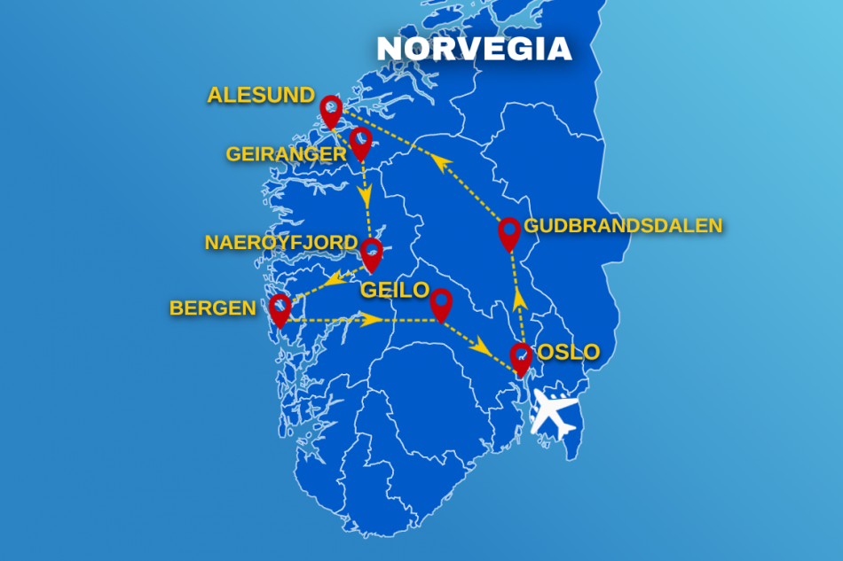 GIORNO 3 - GUDBRANDSDALEN / ALESUND (320 km) - Prima colazione in hotel. Partenza attraverso scenari mozzafiato per la deliziosa cittadina di Ålesund, una vera e propria città-museo che sorge su piccole isole collegate tra loro e che vive di attività pescherecce. Arrivo nel pomeriggio e tempo a disposizione con l’accompagnatore per la scoperta di questo gioiello della Norvegia. Pernottamento hotel Thon Alesund o similare.