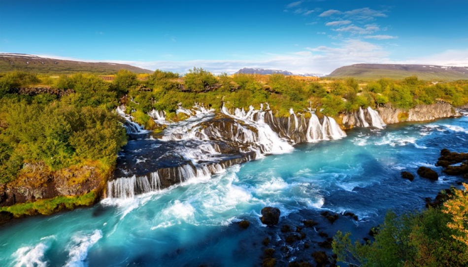 GIORNO 2 - SKAGAFJORDUR / BORGARFJORDUR (342 km) - Colazione in hotel ed incontro con l'accompagnatore. Al mattino visita panoramica della città di Reykjavik per ammirarne il centro storico, il porto e il Parlamento. Partenza per il Nord fino ad arrivare presso la zona dello Skagafjördur. Lungo il percorso passeremo per la cascata di Hraunfossar e la fonte termale più potente d’Europa: Deildartunguhver. Attraverseremo anche l’altipiano di Holtavördurheidi fino ad arrivare alla zona di Skagafjordur. Cena e pernottamento in Hotel Mikligardur o similare.