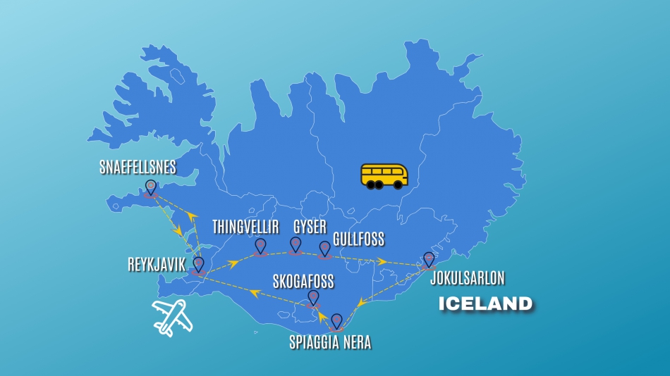 GIORNO 4 - REYNISFJARA/ SKÓGAFOSS/ SELJALANDSFOSS / REYKJAVIK (300 km) - Prima colazione in hotel. Inizieremo la nostra giornata guidando verso Reykjavik e facendo molte soste lungo la strada. Se le strade sono libere, inizieremo la giornata con una breve deviazione al Canyon Fjaðrárgljúfur. Successivamente, avremo la possibilità di visitare l'iconico campo di lava di Eldhraun prima di dirigerci verso la spiaggia nera di Reynisfjara. Le potenti onde dell'Oceano Atlantico mostreranno la loro forza. Reynisfjara è famosa per le sue colonne di basalto appena al largo della costa, chiamate Reynisdrangar. Dopo Reynisfjara, la prossima tappa sarà una visita a Skógafoss, un'imponente cascata che scende per 60 m in una tranquilla piscina sottostante. Sulla strada per la capitale ci fermeremo a Seljalandsfoss, una delle cascate più insolite del mondo, si potrà camminare dietro la cascata per una foto ormai d'obbligo per chi viene in Islanda.Dopo aver gustato la nostra ultima tappa a Seljalandsfoss, il tuo tour di 3 giorni sulla costa meridionale dell'Islanda giunge al termine. Rientro a Reykjavík tra le 16:00 e le 19:00, a seconda delle condizioni. Pernottamento Centerhotel Skjaldbreid o similare