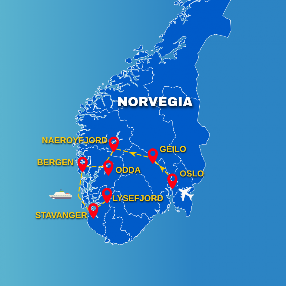 GIORNO 3 - GEILO / MINICROCIERA / ODDA (250KM) - Oggi avrete come destinazione il famoso Sognefjord, il fiordo piu' lungo della Norvegia. Guidate in direzione Flam, un piccolo villaggio che si trova nel cuore del fiordo Aurlandfjord, tra boschi, centinaia di cascate e un fiume lungo una ventina di chilometri. E' sicuramente uno dei paesi di montagna affacciato su un fiordo tra i più belli al mondo. Dopo aver parcheggiato l'auto, visitate il piccolo centro colmo di cateè, ristoranti e negozi di souvenir. Alle ore 15.30 partenza per Gudvangen attraverso il Nærøyfjord, sbarco dopo una bellissima navigazione di 2ore. Tempo libero e rientro a Flam in circa 20 minuti di bus, incluso. Ripartenza in auto in direzione Odda attraversando il ponte sull’Hardangerfjord, il ponte sospeso più lungo della Norvegia. Pernottamento Tyssedal Hotel o similare